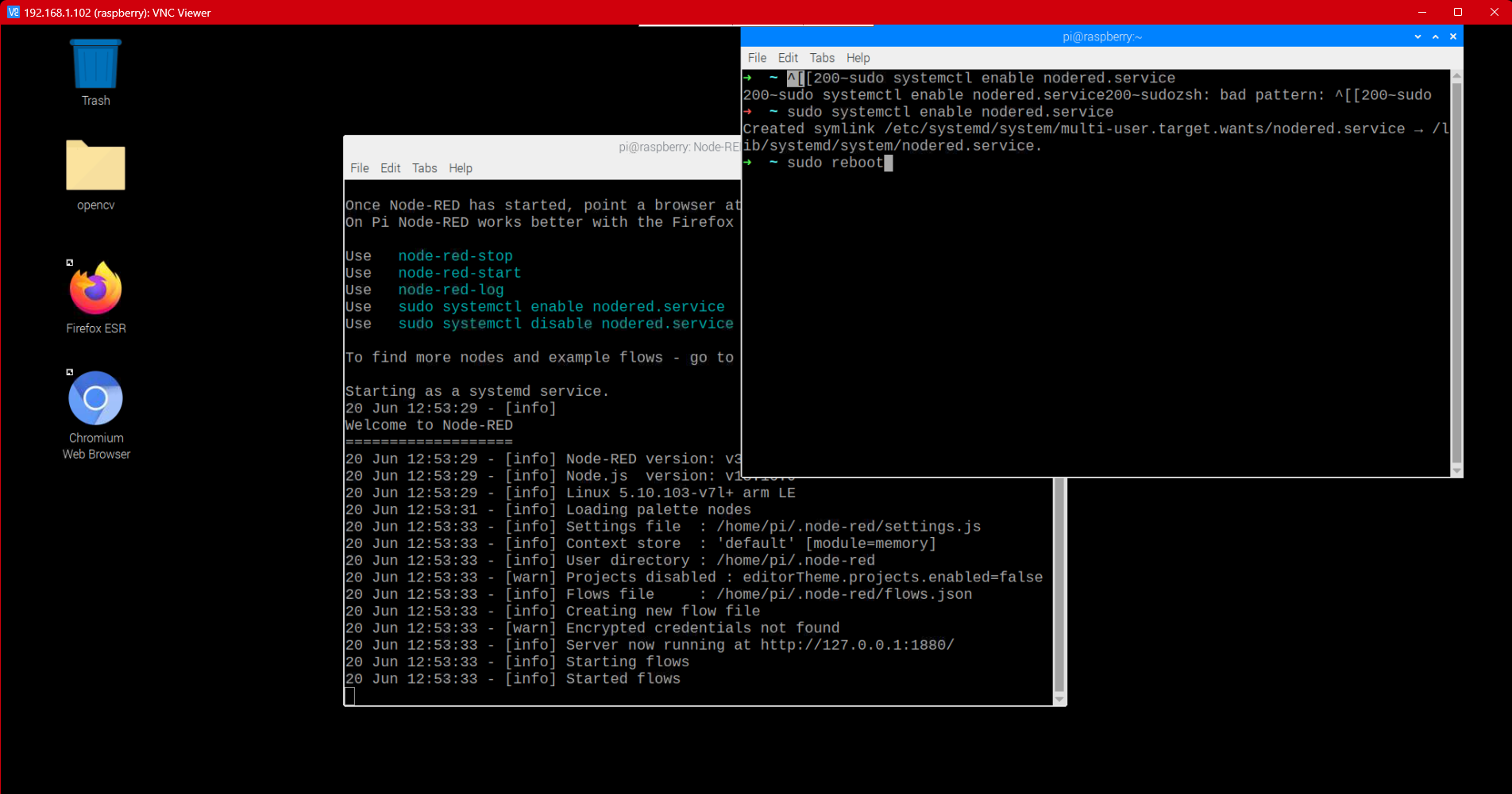 Para ejecutar Node-RED automáticamente cuando se inicia el Pi, debe ingresar el siguiente comando. Esto significa que mientras su Raspberry Pi esté encendida, Node-RED estará funcionando.