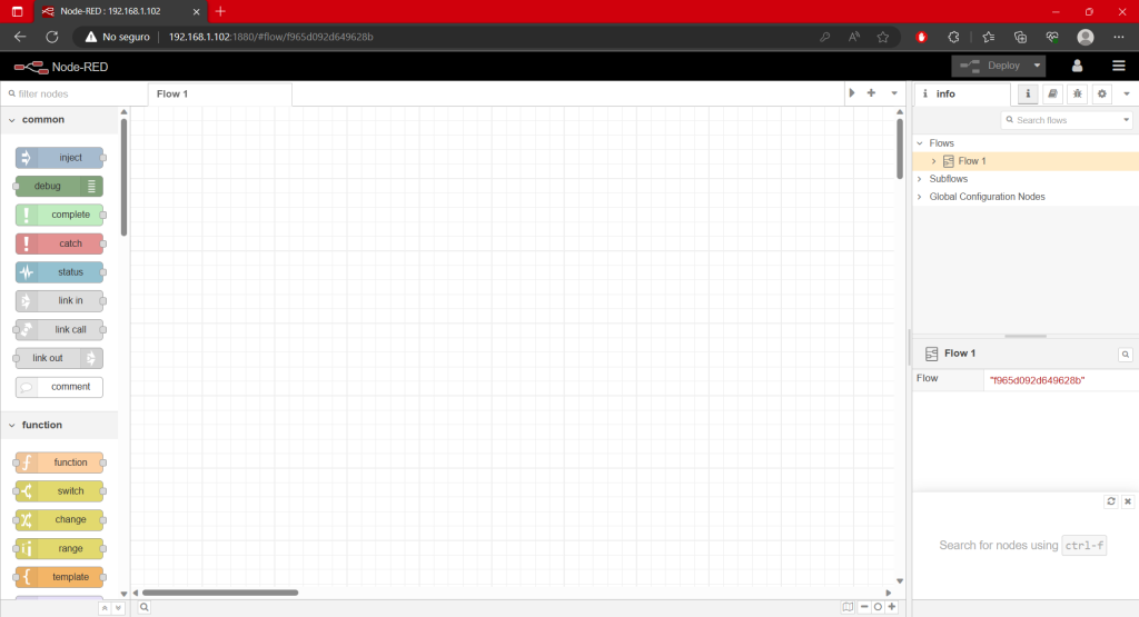Ya se tiene el acceso a Node-RED. Ahora se puede comenzar a construir sus flujos.